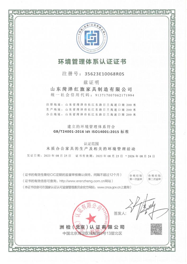 環(huán)境管理體系認證證書